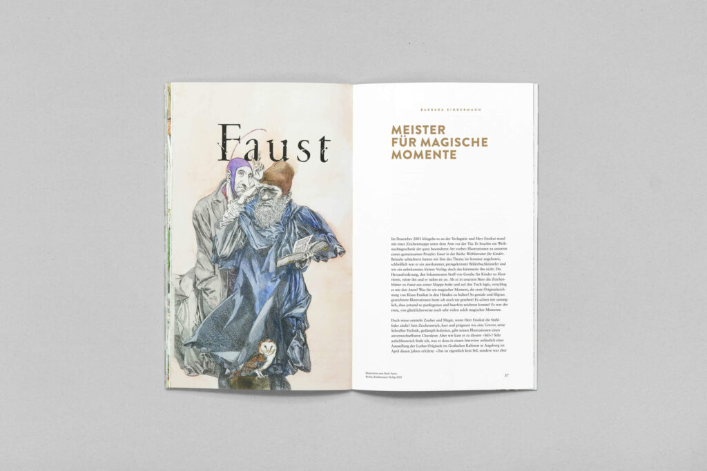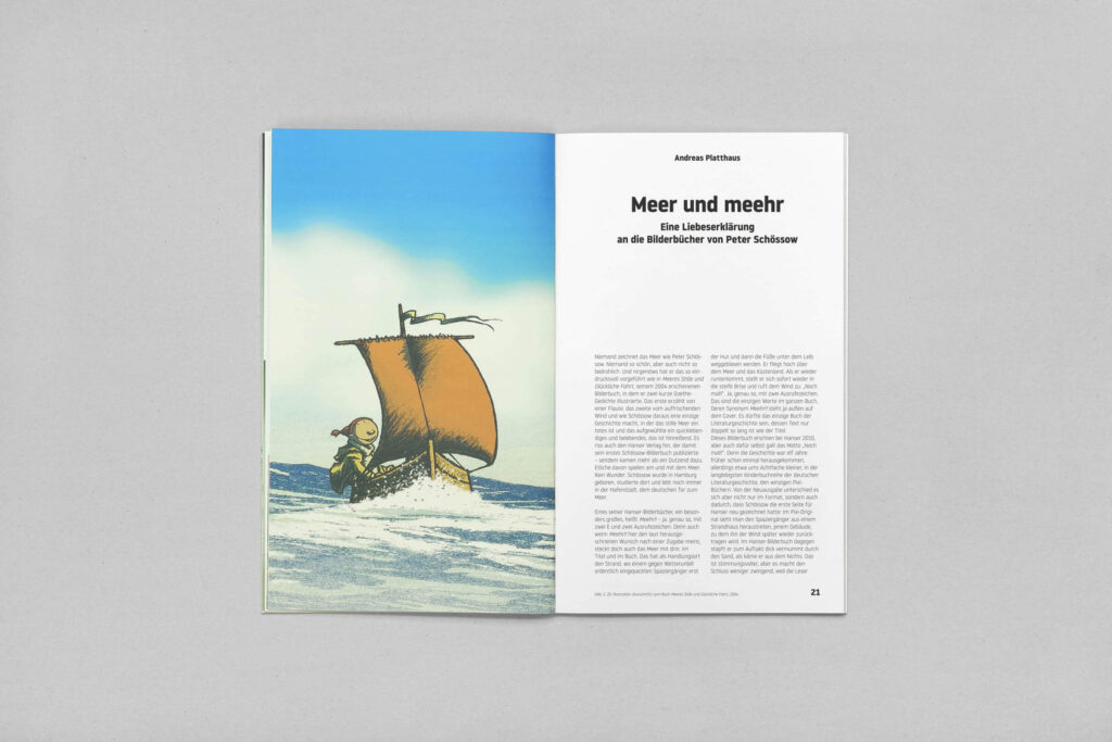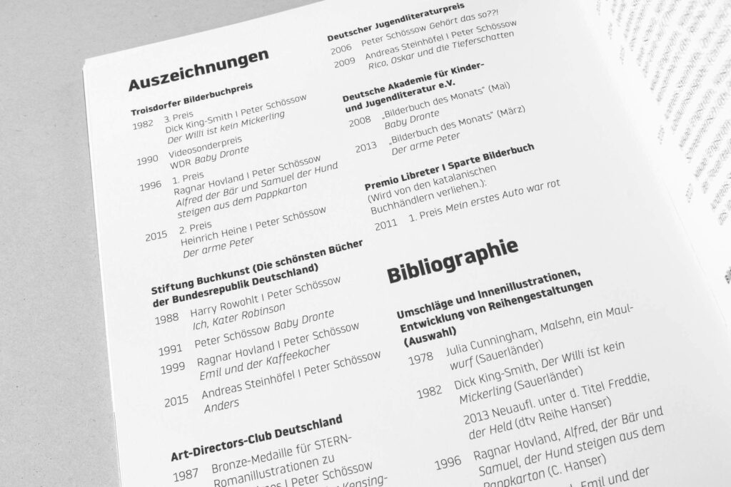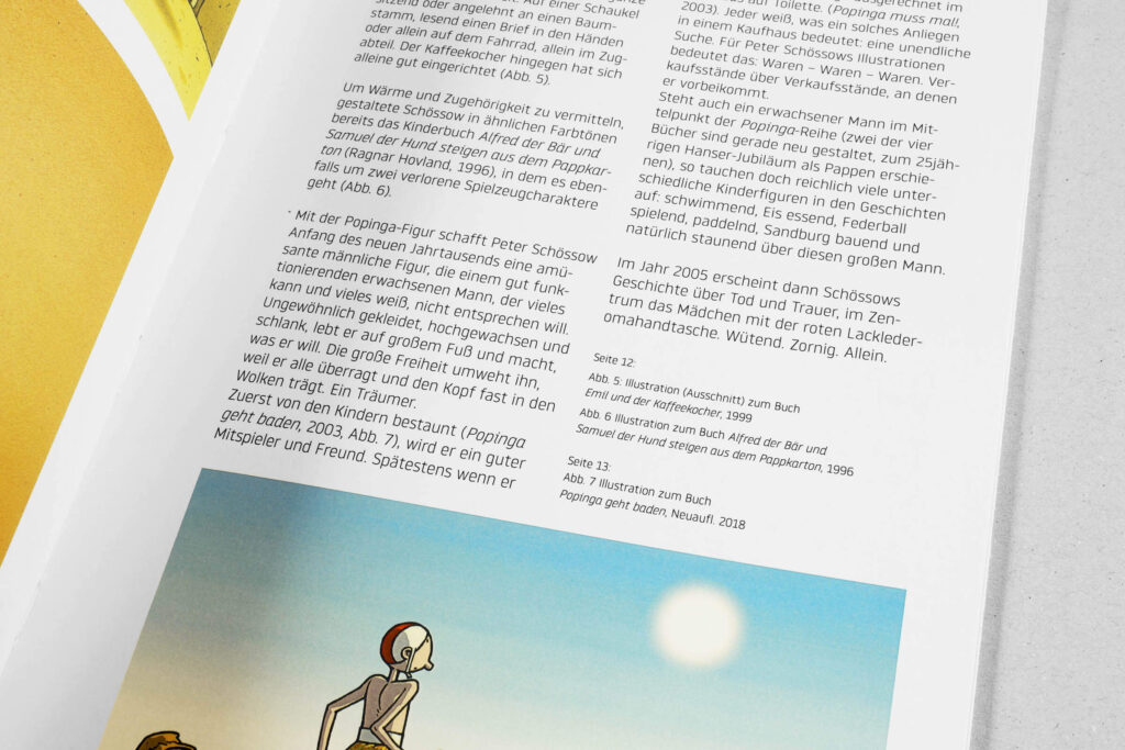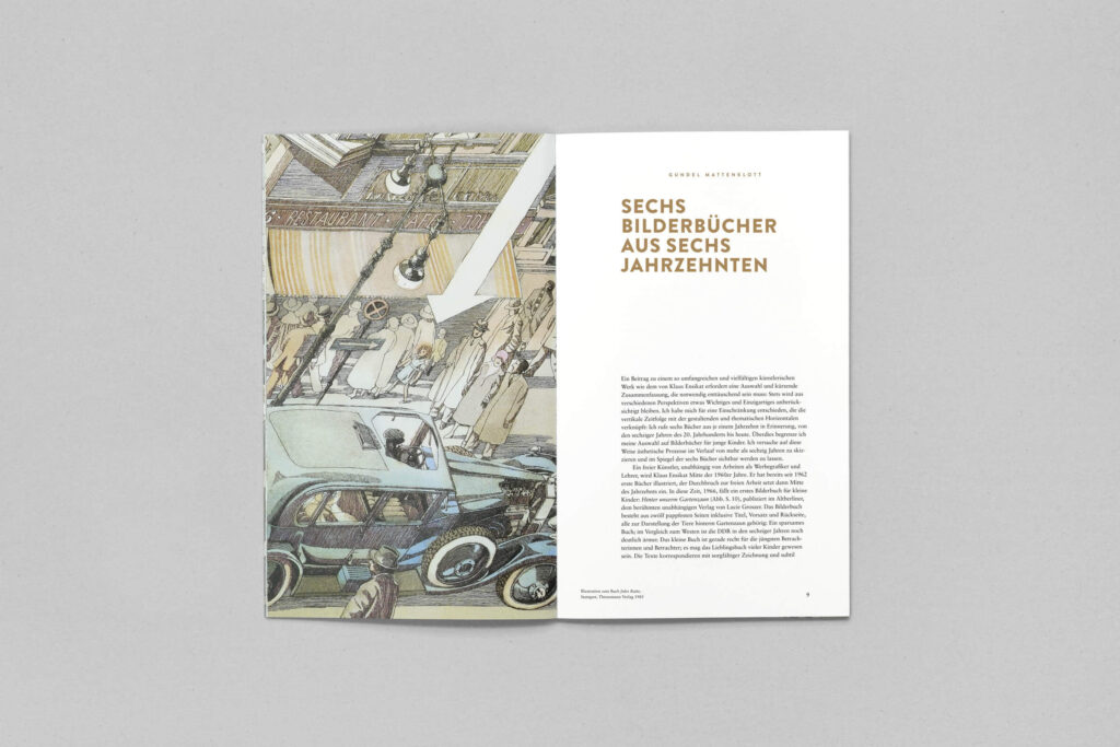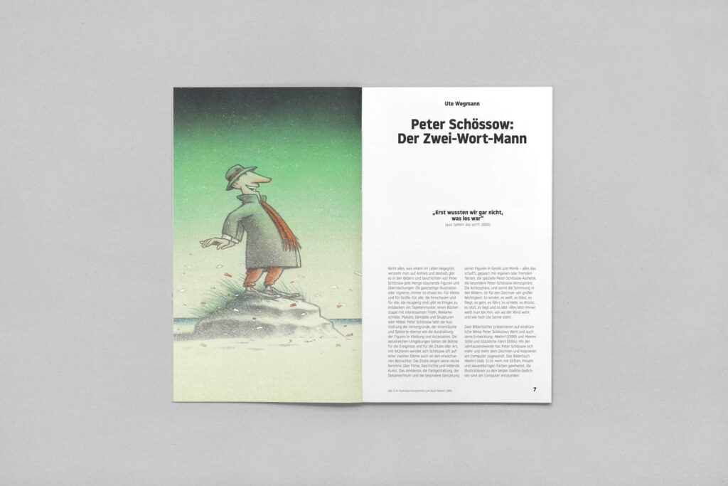 Das Troisdorfer Bilderbuchmuseum begleitet seine Einzelausstellungen bedeutender Illustratorinnen und Illustratoren regelmäßig mit Katalogen in einem besonders schmalen Format (18 x 29,7 cm), was diese Katalogreihe besonders macht. Hier zu sehen sind die Ausstellungskataloge von Peter Schössow, Klaus Ensikat und Hans Traxler, drei Illustratoren, die die Kunstwelt jeweils auf ihre Weise bereichert haben. Schössow fasziniert mit dynamischen Linien und einem Kataloglayout, das seine Illustrationen in den Vordergrund rückt. Ensikat, bekannt für seine detailreichen Federzeichnungen, wird durch seinen Katalog als Meister der Buchkunst gewürdigt. Traxler, Mitbegründer des Satiremagazins »Titanic«, bringt mit seinen humorvollen Zeichnungen Leichtigkeit in das Programm des Bilderbuchmuseums.