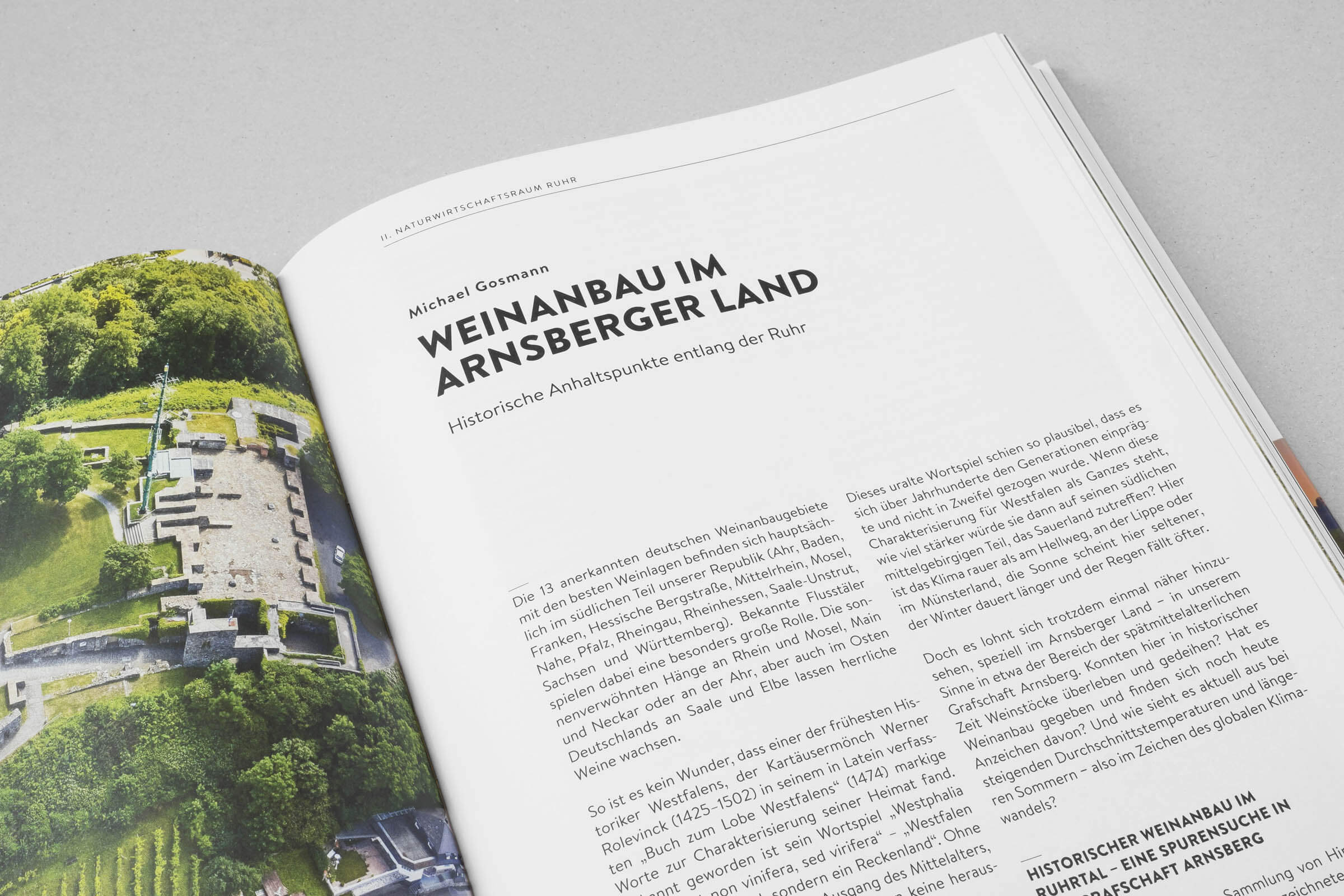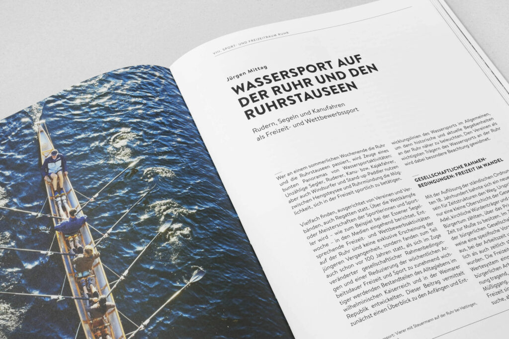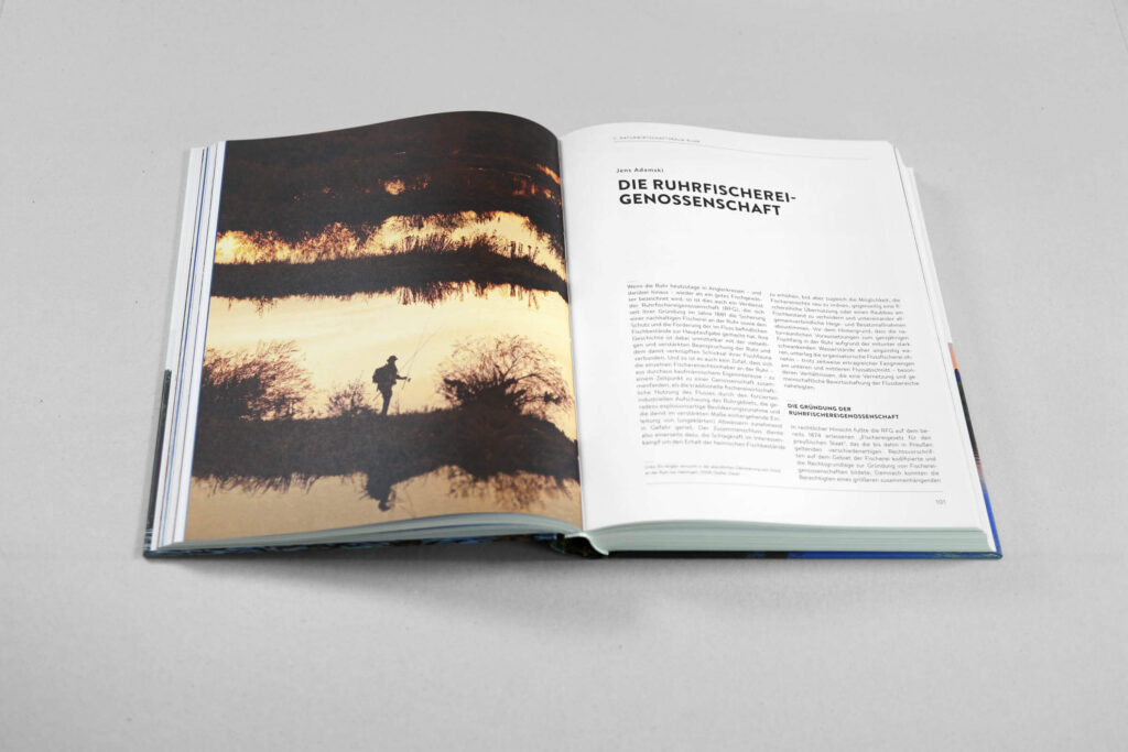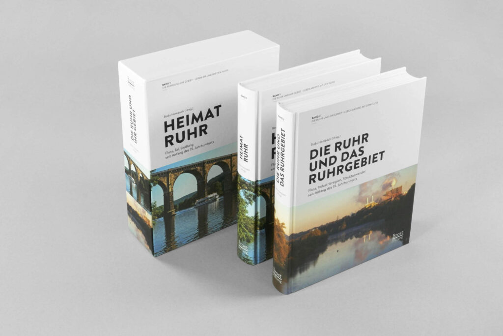 Über das Ruhrgebiet wurde bereits viel geschrieben, doch ein allumfassendes Werk über den namensgebenden Fluss fehlte bisher. Diese Lücke wird nun mit diesen beiden Bänden geschlossen! Die Herausforderung in der Buchgestaltung bestand darin, ein abwechslungsreiches Layout zu entwickeln, das die komplexen Beziehungen zwischen Text und Abbildungen optimal präsentiert und gleichzeitig flexibel auf vollformatige Abbildungen reagiert.