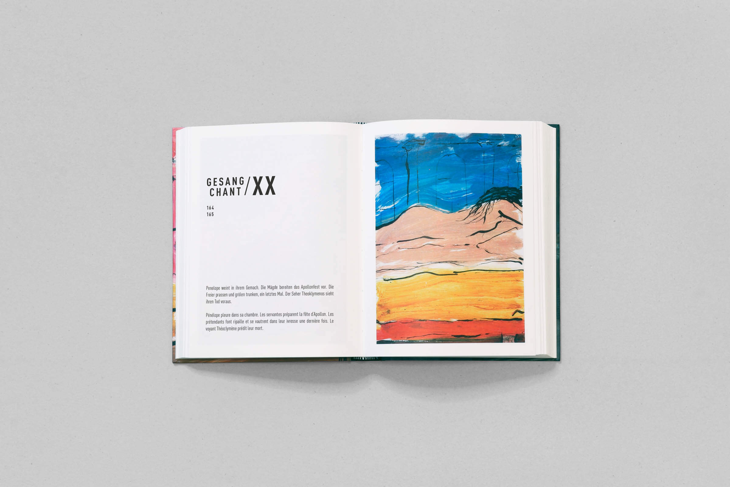 Zwei Künstler stellen sich einem Klassiker der Weltliteratur! Dabei herausgekommen sind eine gemeinsame Ausstellung und das vorliegende Buch. Das Besondere an dem 2 x 226 Seiten starken Werk: Es hat zwei Titelseiten und dementsprechend keine Rückseite. Leserinnen und Leser haben somit die Freiheit, die epischen Reisen des Odysseus auf zwei Arten zu beginnen: Entweder mit Holger Schnapp, der aktuelle Ereignisse in seinen analogen Collagen verarbeitet, oder mit Günter Vossiek, der die Geschichte mit seinen malerischen Techniken neu interpretiert. Zwei Leserichtungen – ein großartiges Erlebnis!