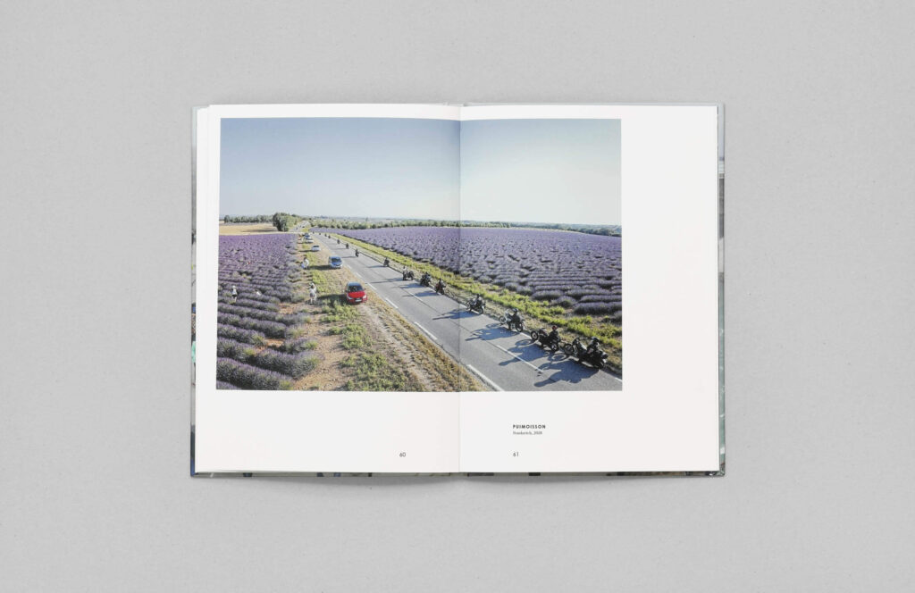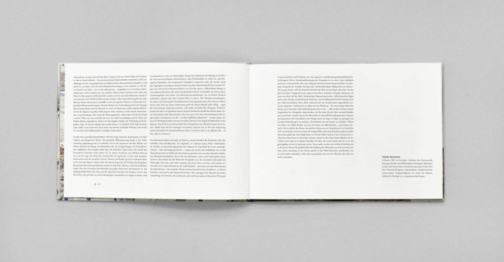 Hier abgebildet sind zwei Bücher, eines im Hoch- und das andere im Querformat. Das Querformat repräsentiert die finale Ausführung, während das Hochformat als vorläufiger Buchdummie diente, um in der Phase der Buchgestaltung das passendste Format für die Fotos zu ermitteln.