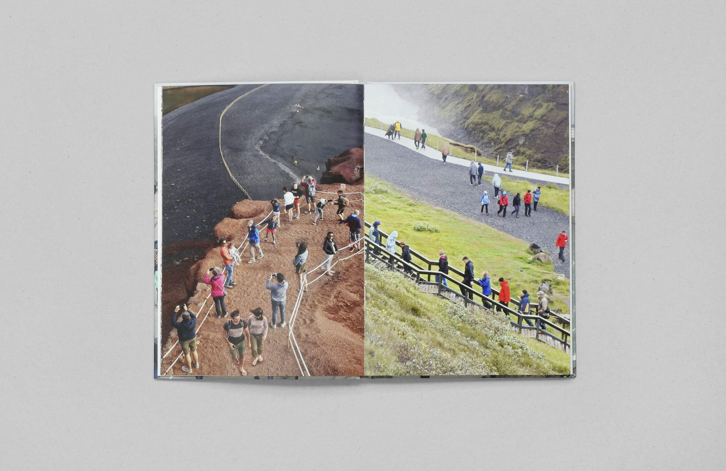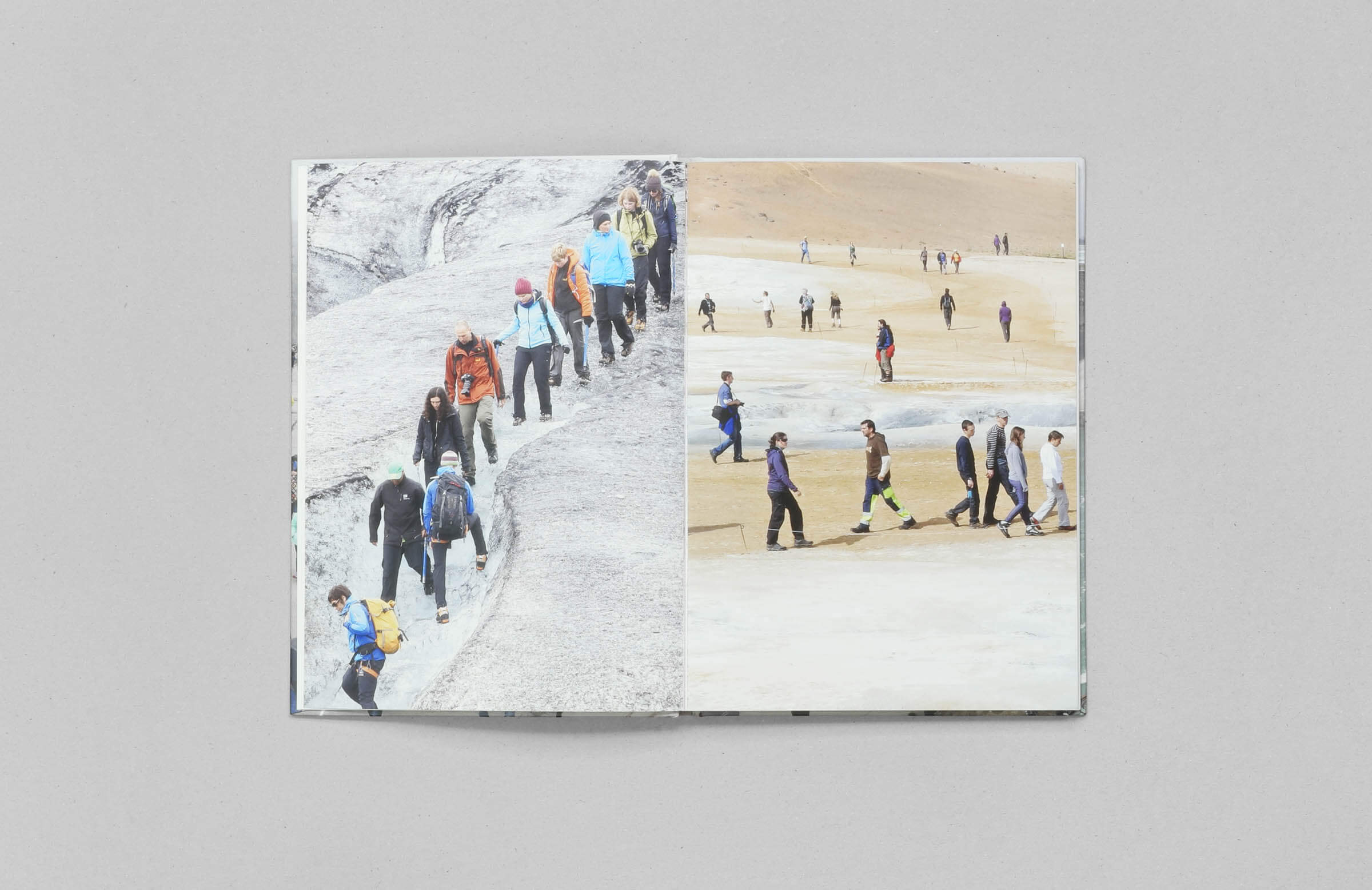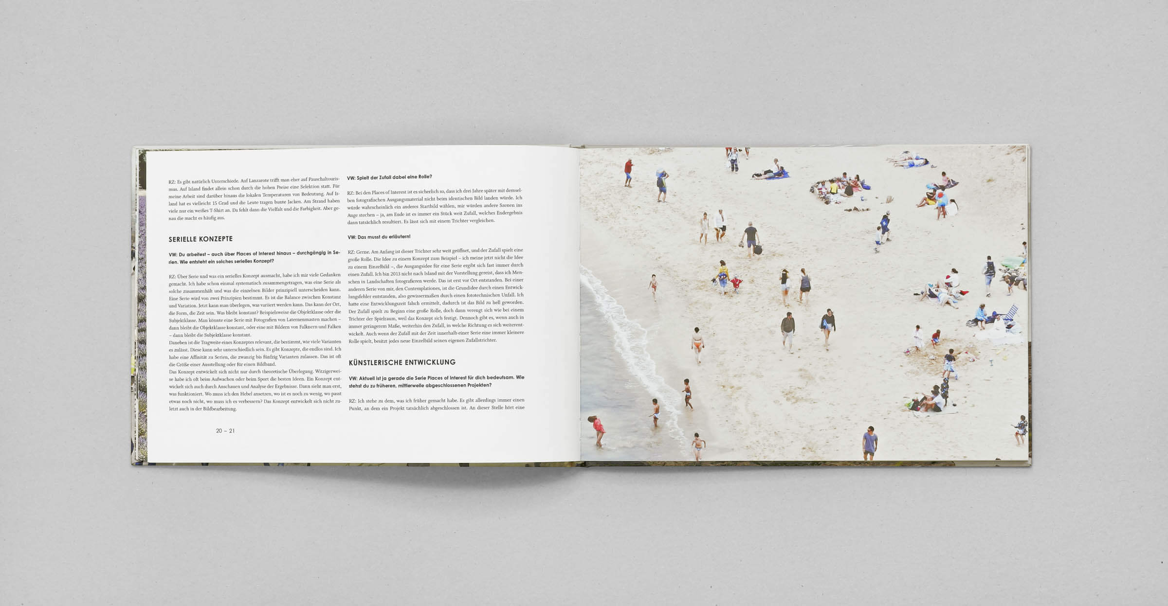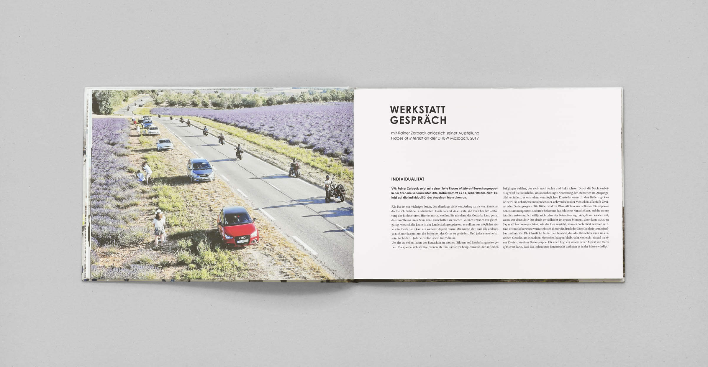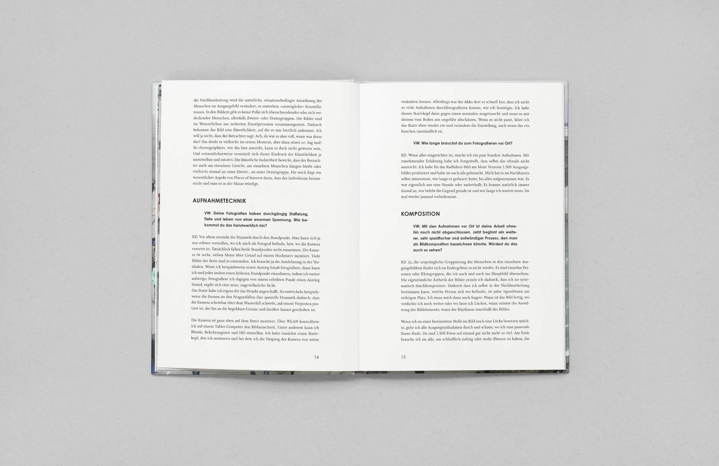 Hier abgebildet sind zwei Bücher, eines im Hoch- und das andere im Querformat. Das Querformat repräsentiert die finale Ausführung, während das Hochformat als vorläufiger Buchdummie diente, um in der Phase der Buchgestaltung das passendste Format für die Fotos zu ermitteln.