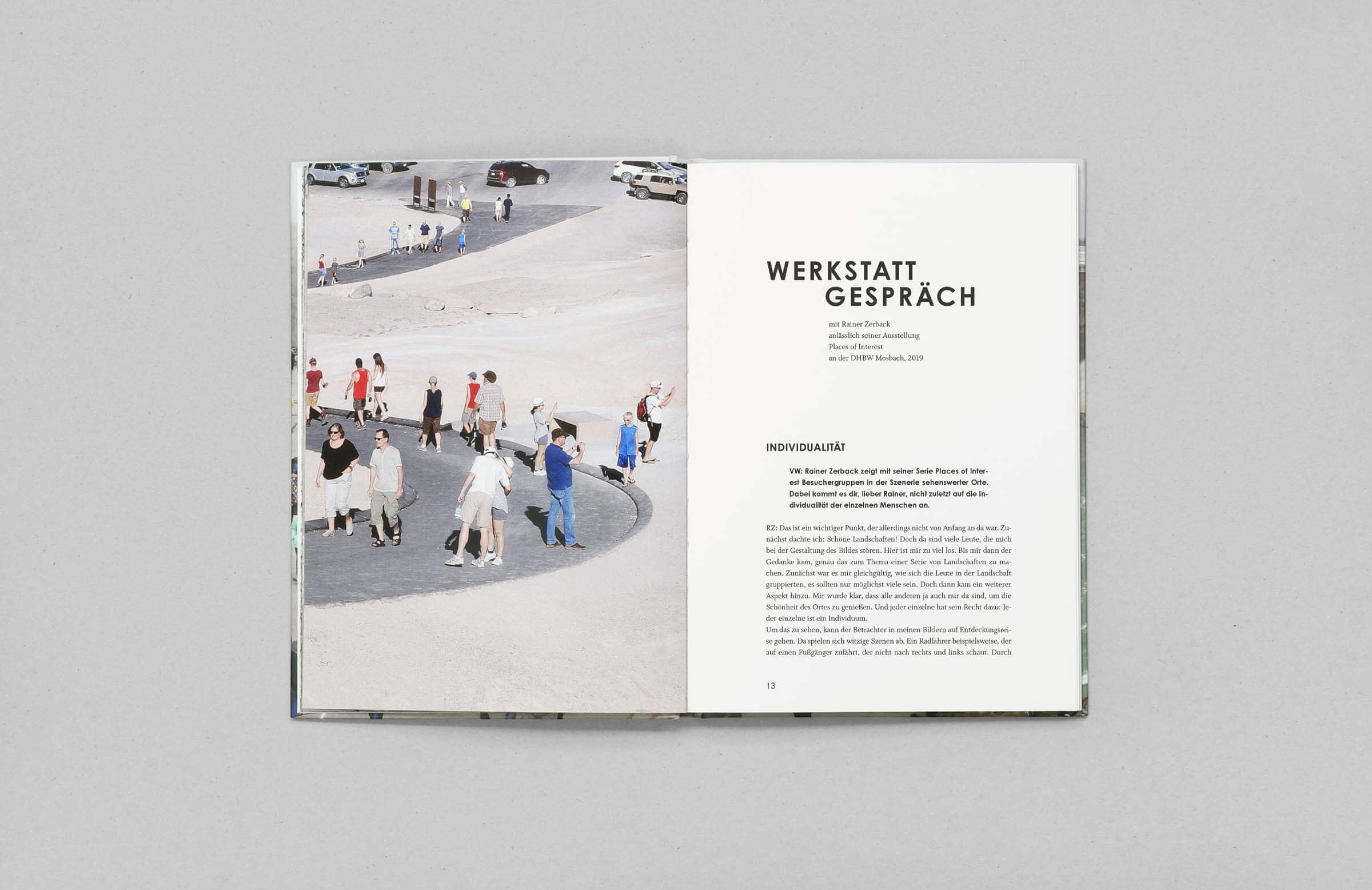 Was sind »Places of Interest«? Sehenswürdigkeiten, die Menschen anziehen, Orte, die im Urlaub unbedingt besucht werden sollten. Rainer Zerback möchte das große Interesse an den historischen Plätzen oder unberührt wirkenden Landschaften in besonderer Weise festhalten. Dafür positioniert er »Besucher«, die zu verschiedenen Zeiten an diesen Plätzen waren, auf einmal in einem perfekt arrangierten Foto. Das Ergebnis wirkt surreal und doch bekannt.
