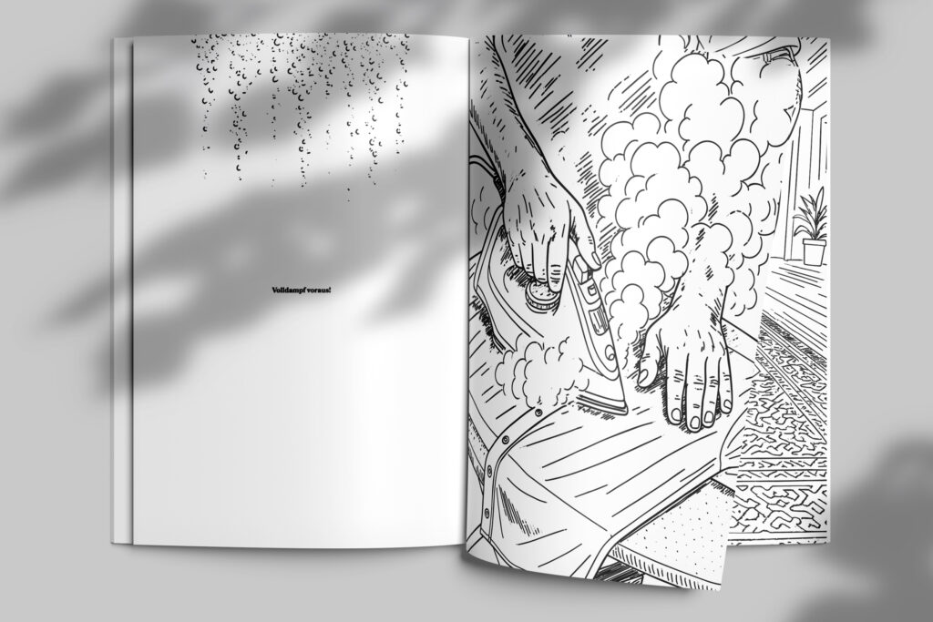 Hier wird gebügelt, geputzt, gekocht und gesaugt, aber garantiert ohne Schweißperlen, stinkende Putzmittel oder nervige Rückenschmerzen. Alles, was du brauchst, sind ein paar Stifte und Lust auf Farbe. Während andere sich mit Staubsauger und Wischmopp abmühen, schaffst du dir dein eigenes kleines Glück: Strahlend saubere Fenster? Einfach anmalen! Ein blitzblanker Boden? Einmal mit dem Buntstift drüber. Wäsche fertig? Zack – ausgemalt.